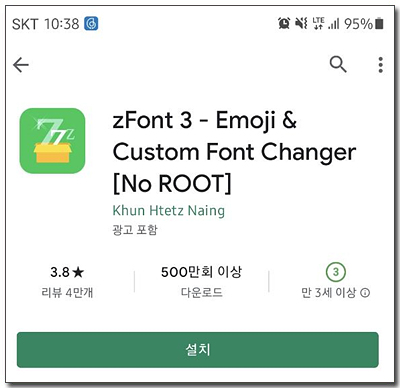 1. ๊ตฌ๊ธ Play ์คํ ์ด์์ zFont3 ์ฑ ์ค์นํ๊ธฐ.