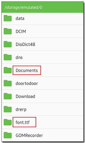 ํฐํธ๋ฅผ ์ง์ ํ๋ ํ์ด์ง๊ฐ ์ด๋ฆฝ๋๋ค. ์ฌ์ฉ์์ ํด๋ํฐ์ ์๋ ํด๋๋ค์ด ๋ํ๋ฉ๋๋ค. ์ font๋ผ๋ ํด๋๋ฅผ ๋ฐ๋ก ๋ง๋ค์ด ๋์์ต๋๋ค. ์ฌ์ฉ์์ ํด๋ํฐ์ ํฐํธ๊ฐ ์ ์ฅ๋์ด ์๋ ํด๋๋ฅผ ์ ํํ์ฌ ์ฃผ์ธ์.