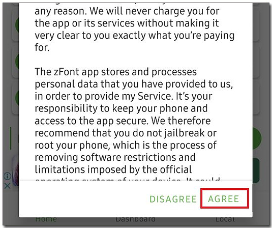 zFont3 ์ฑ์ด ์คํ๋ฉ๋๋ค. ์ฑ ํ๋จ์ Local์ด๋ผ๋ ์์ด์ฝ์ด ์์ต๋๋ค. Local์ ์ ํํ์ฌ ์ฃผ์ธ์.