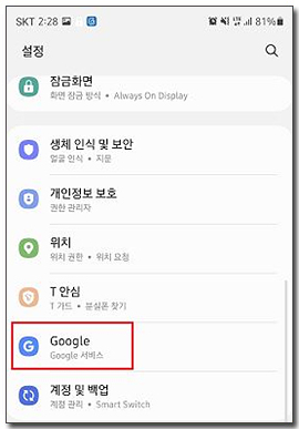 ์ค์ ์ด ์ด๋ฆฌ๋ฉด "Google"์ ์ฐพ์์ ์ ํํ๊ณ "๊ณ์ ์๋น์ค" ์ ํ "๊ฒ์, ์ด์์คํดํธ ๋ฐ Voice"๋ฅผ ์ ํํด ์ฃผ์ธ์.