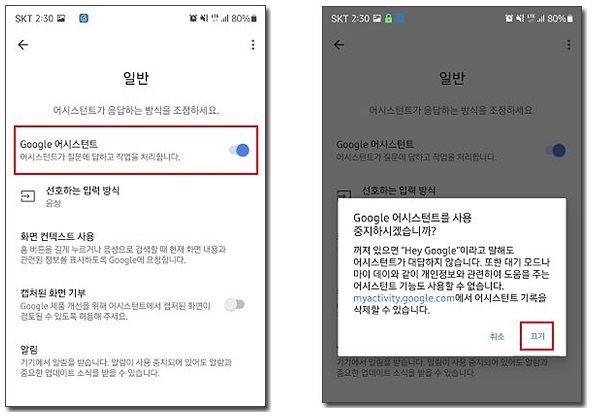 1. ๊ตฌ๊ธ ์ด์์คํดํธ ๋๊ฑฐ๋ ์ฐจ๋จํ๊ธฐ.