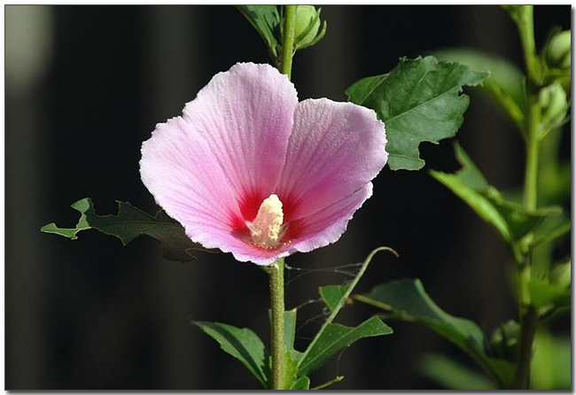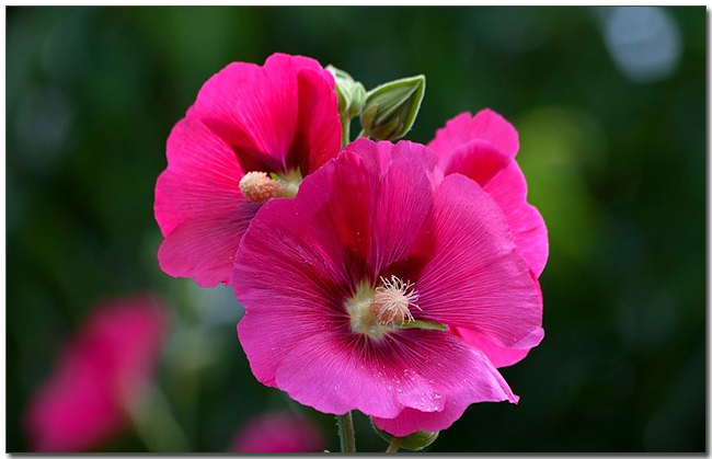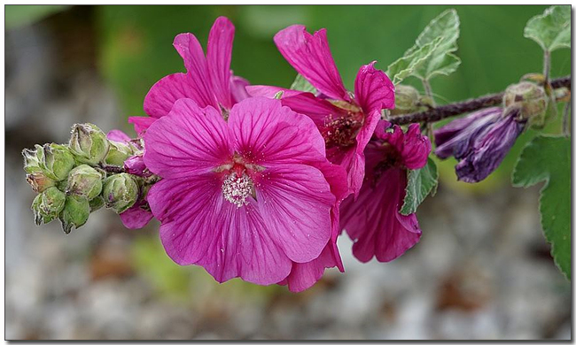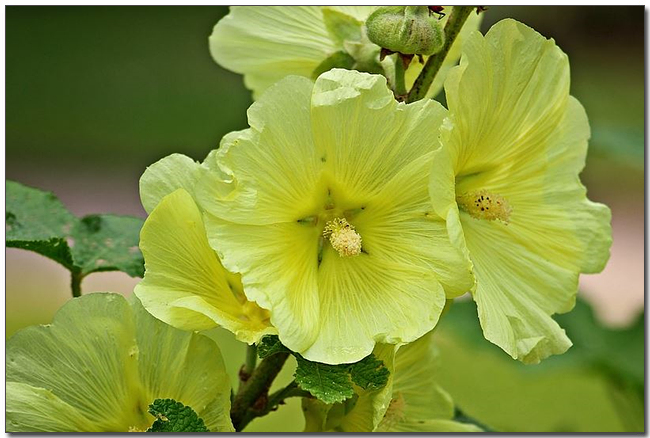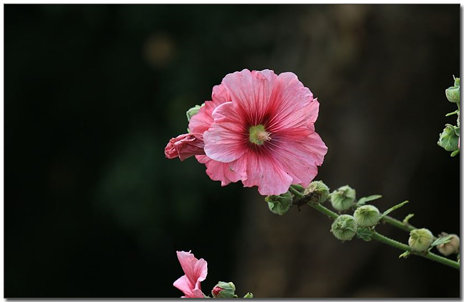 ์ ์๊ฝ(Alcea rosea)์ ์์์, ์๋ฆฌ์๊ฐ ์์ฐ์ง์ด๋ฉฐ 4m๊น์ง ์๋๋๋ค.