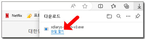 ๋ฌ๋ ฅ ํ๋ก๊ทธ๋จ์ด ๋ค์ด๋ก๋๋ฉ๋๋ค. ๋ค์ด๋ก๋๊ฐ ์๋ฃ๋๋ฉด ํ์ผ ์ด๊ธฐ๋ฅผ ํด๋ฆญํ์ฌ ์ค์น๋ฅผ ์งํํฉ๋๋ค.