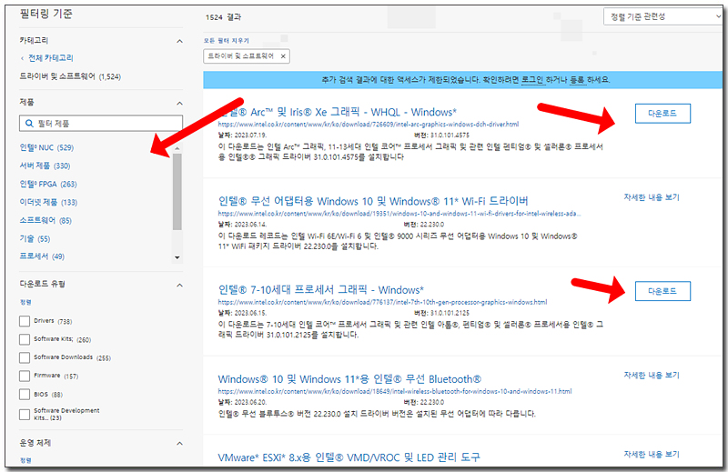 https://www.intel.co.kr/content/www/kr/ko/support/graphics-drivers.html