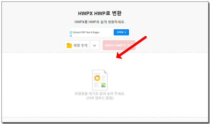 ํ์ด์ง์ ์ ์ํ๋ฉด ํ์ผ ๋ณํ์ ์ํ์ฌ hwpxํ์ผ์ ์ถ๊ฐํ๋ ํญ๋ชฉ์ผ๋ก ์ด๋๋ฉ๋๋ค. ํ์ผ์ ์ถ๊ฐํ๊ฑฐ๋ ๋ง์ฐ์ค๋ก ๋์ด์ ๊ฐ์ ธ๋ค ๋์ผ์๋ฉด ๋ฉ๋๋ค.