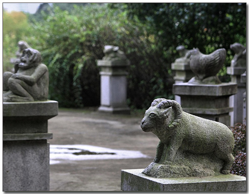 ํ๋ฃจ๋ฅผ 12๊ฐ์ ์๊ฐ ๋จ์(์์ง, ๆ่พฐ)๋ก ๋๋ด๊ณ , ๊ฐ๊ฐ์ ์๊ฐ๋์ ๋ง์ถฐ ๋๋ฌผ์ ๋ฐฐ์นํ์ต๋๋ค.